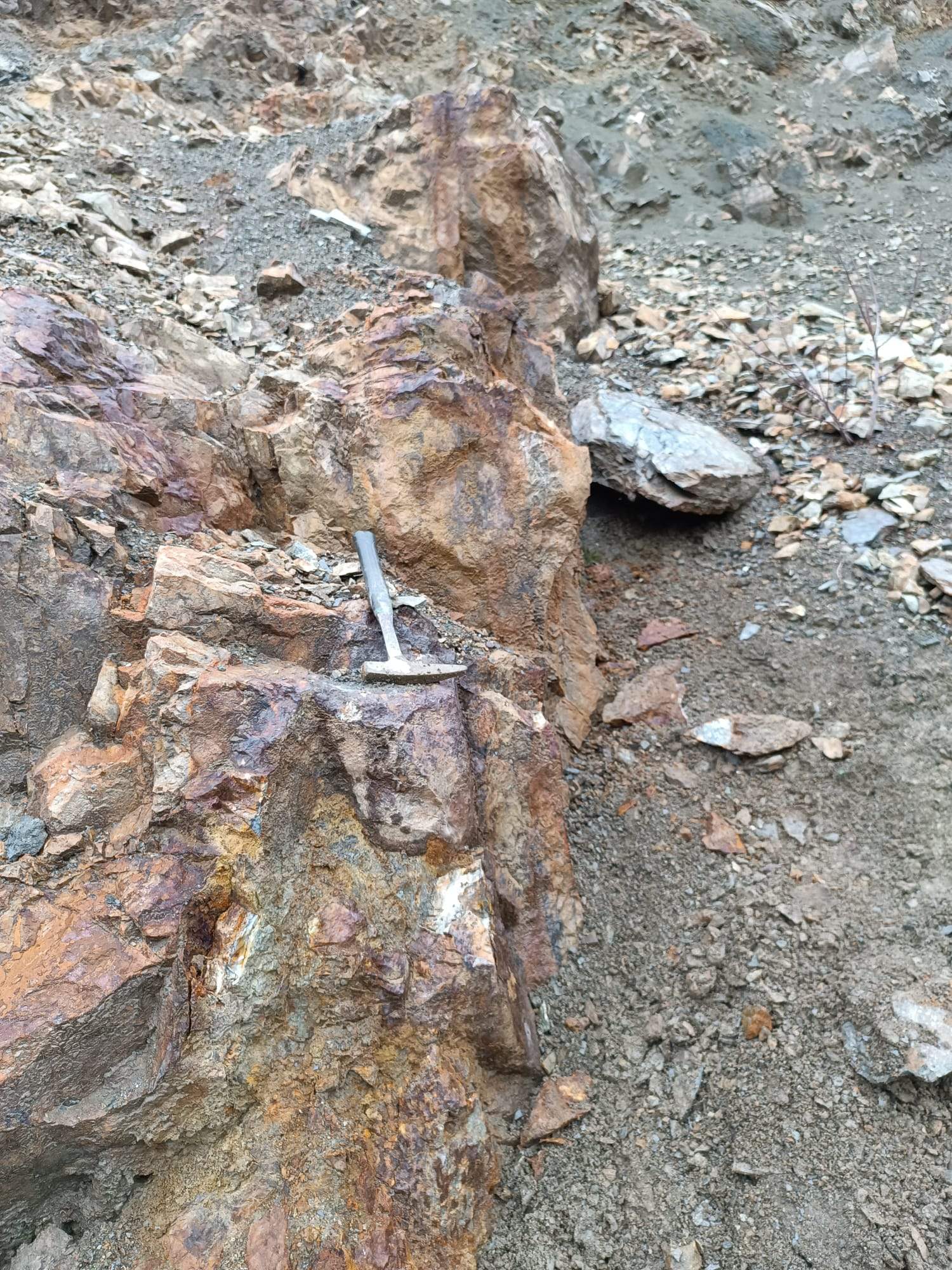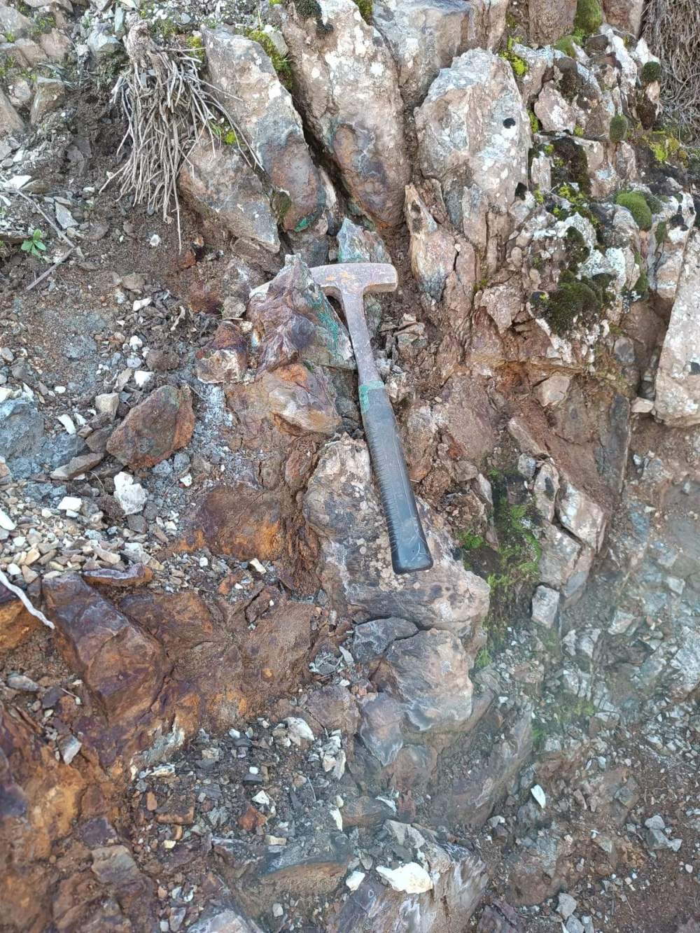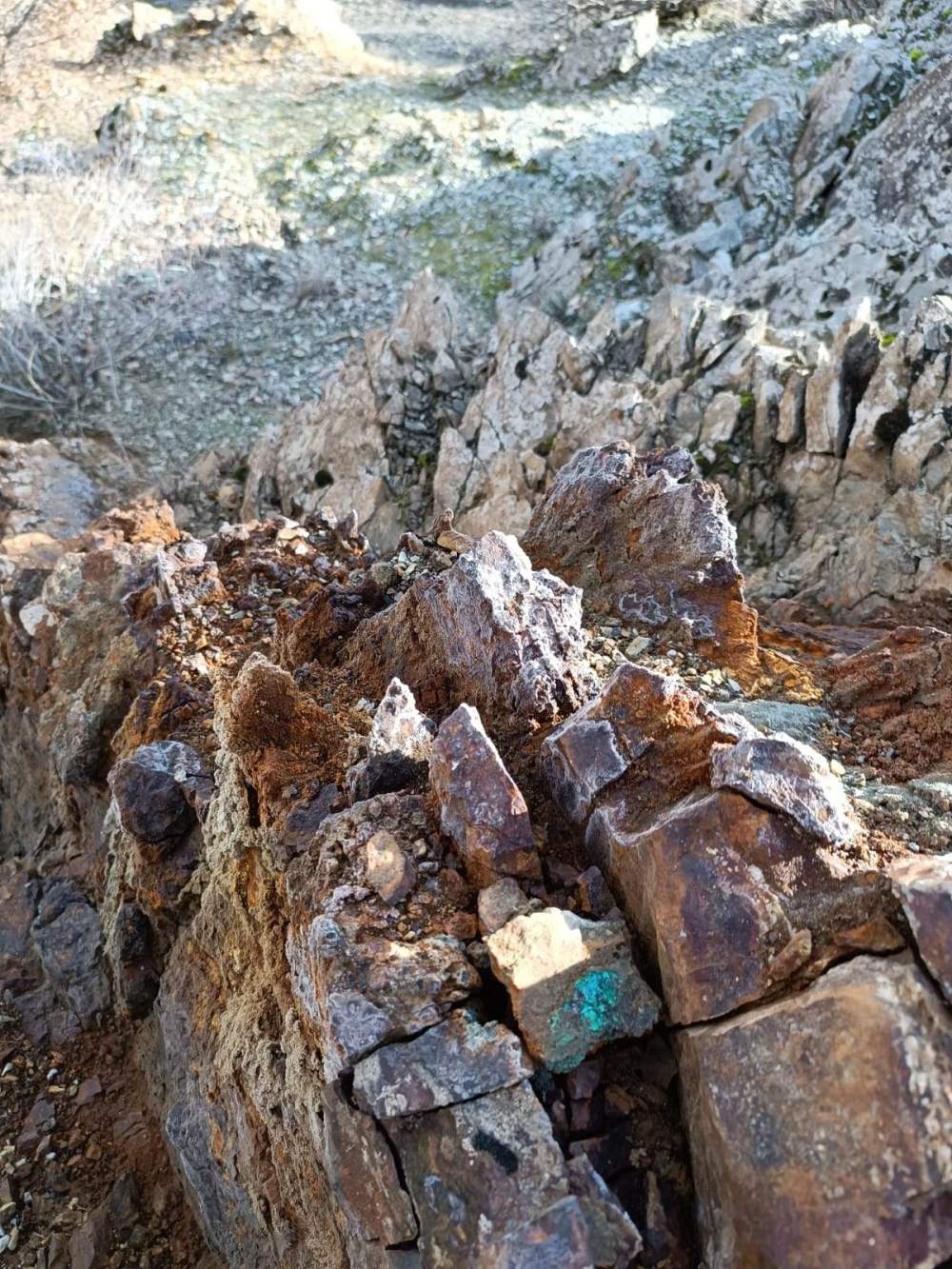 Vein (a) with 2 meter wide copper deposit mineralisations ore wit up to %17 grade.