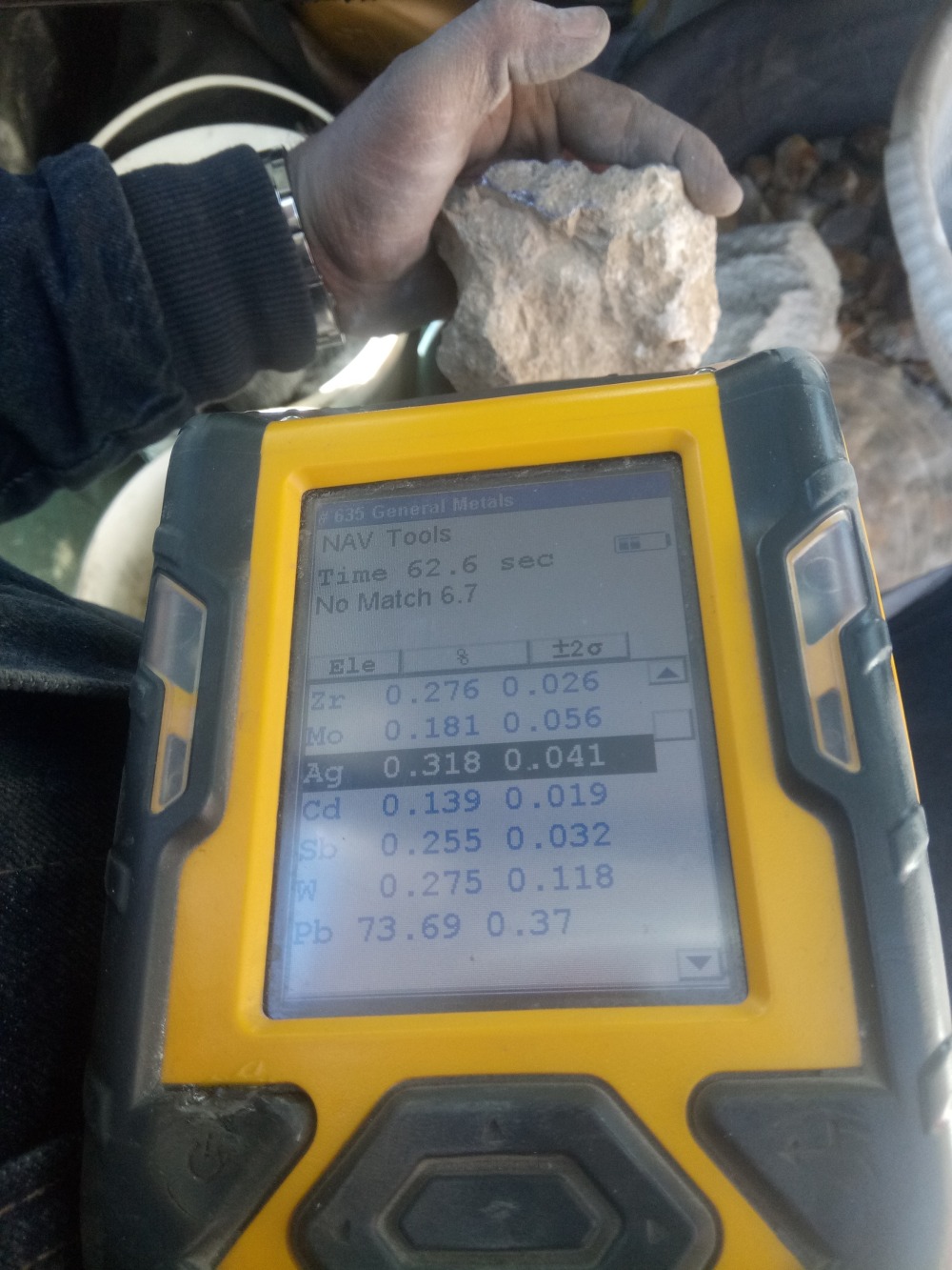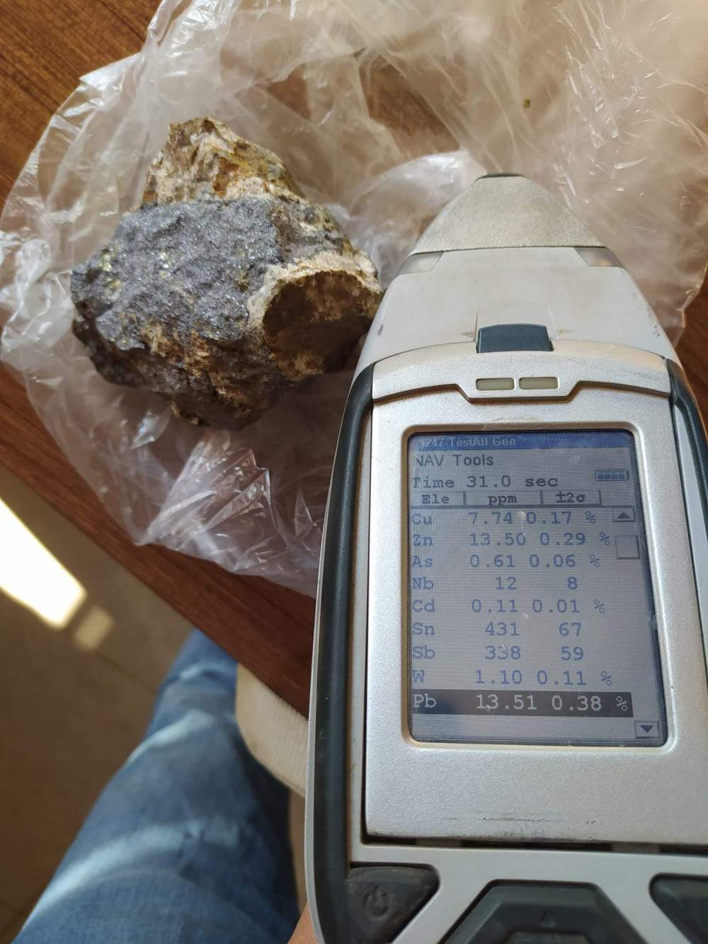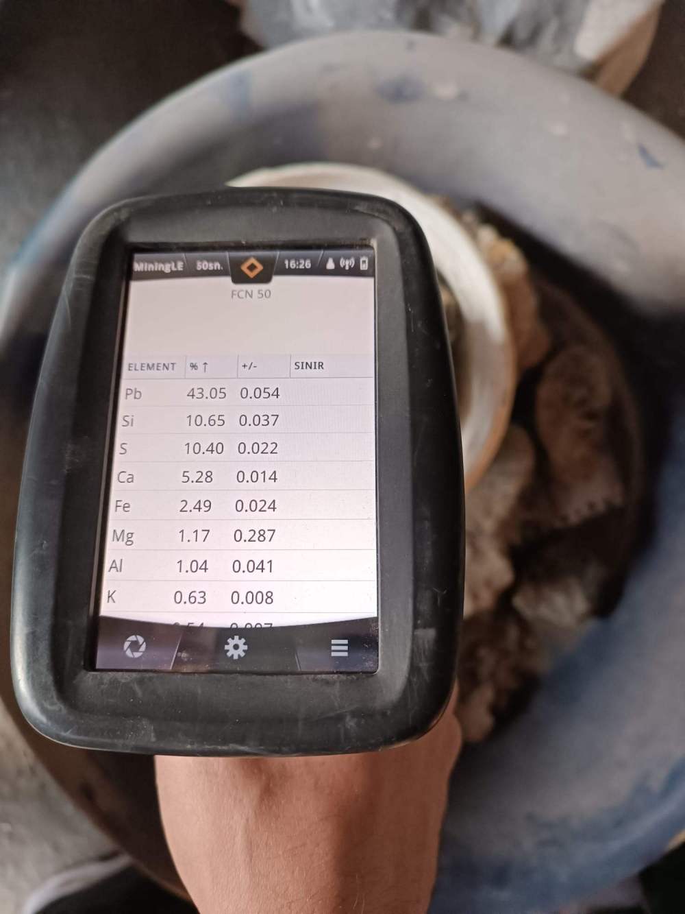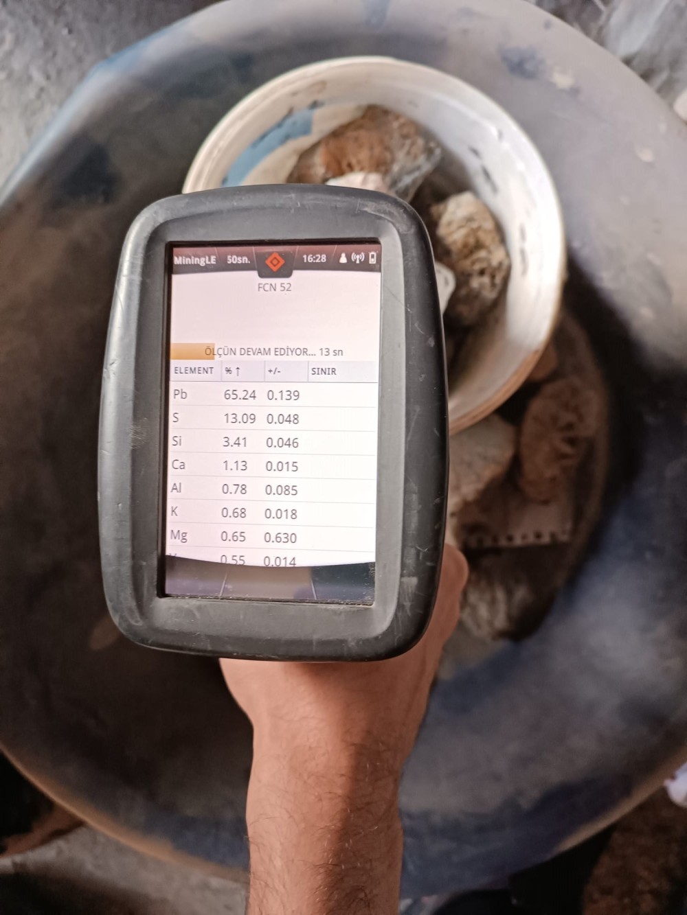 an Hitachi XRF reading rock sample from the second vein rich with lead %65,24.