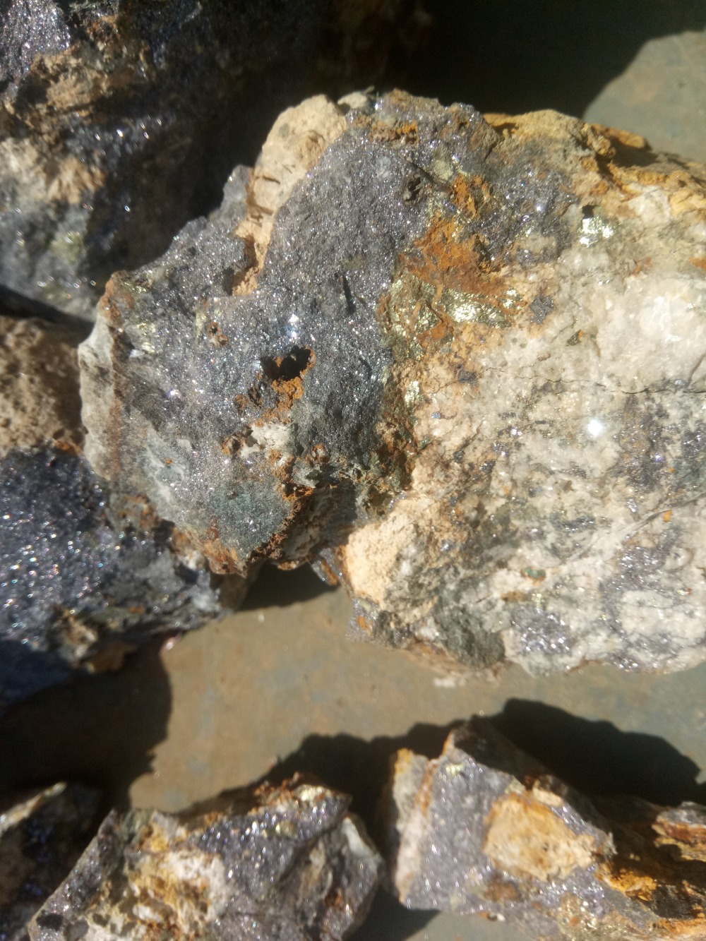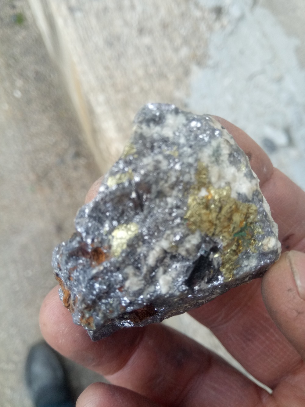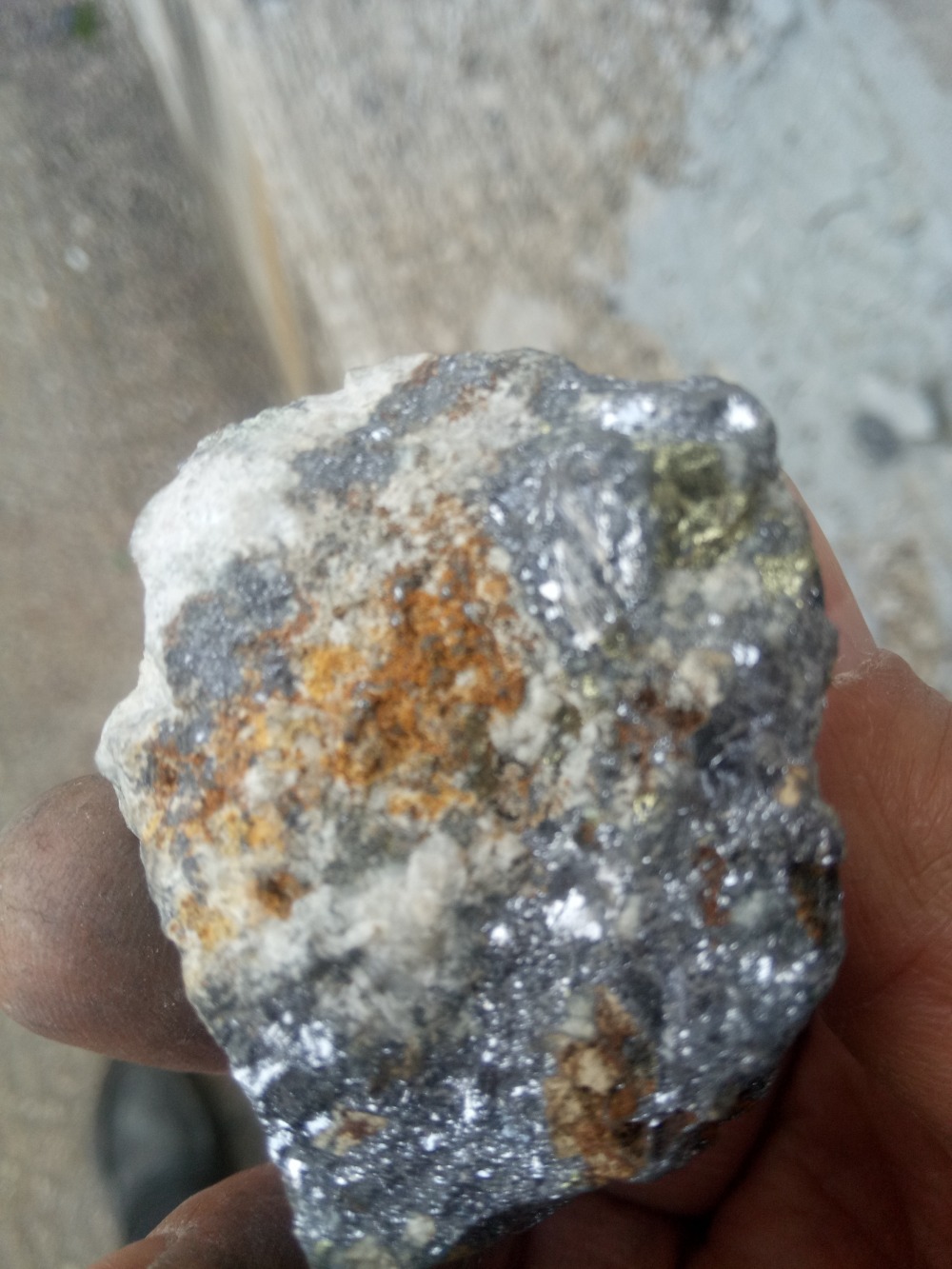 a chunky of rock sample rich with lead+silver+copper collected from the first vein