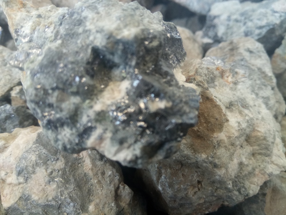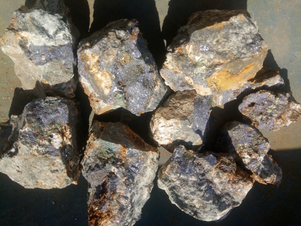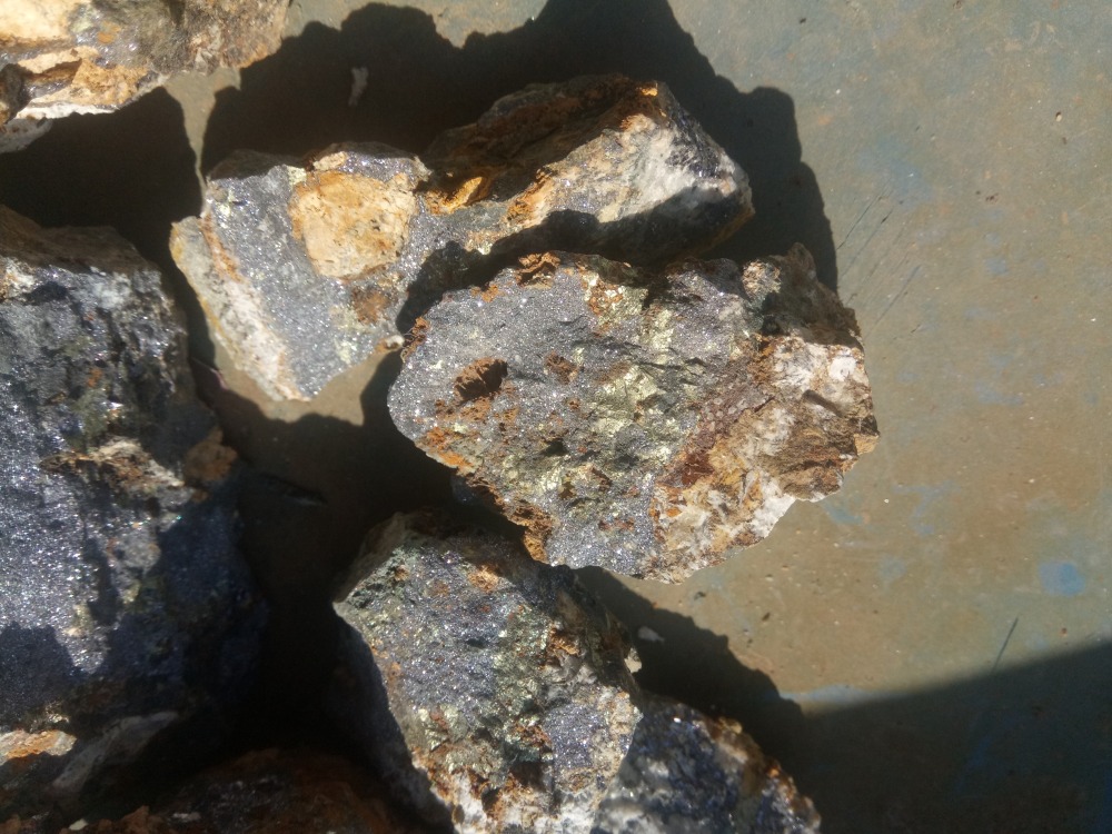 a chunky of rock samples collected from the first vein rich with lead + copper + gold + plantinum + nickel.