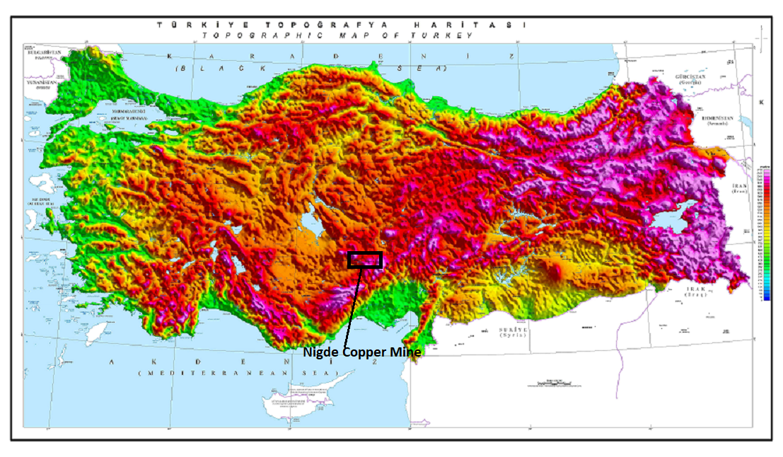 the nigde copper mine is located in Anatolia part of Türkiye the size of mine 5.679 hectares the mine deposit start with copper oxide from the surface around up to 20 meter depper than it will turning in to Sulfur type deposit, Copper + Gold + Zinc + Lead + Silver+Platinum deposit the base metal is copper, by product Lead + Zinc + silver + gold + platinium.